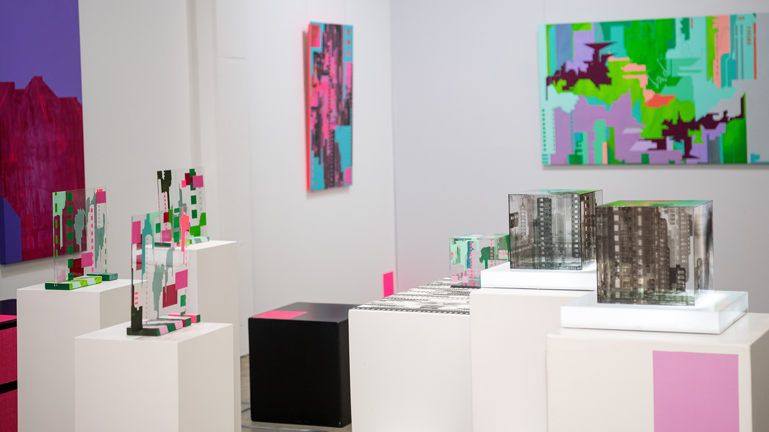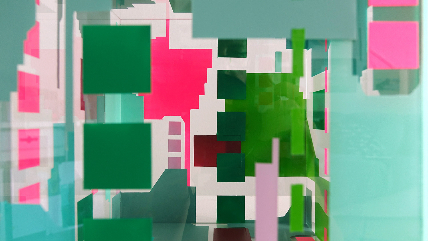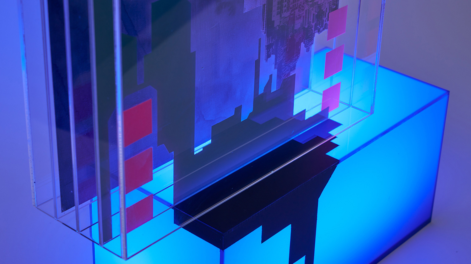 Acrylic and washi tape on acrylic panels, mirror, in acrylic cube with LED lightbox, 31 x 36 x 31cm