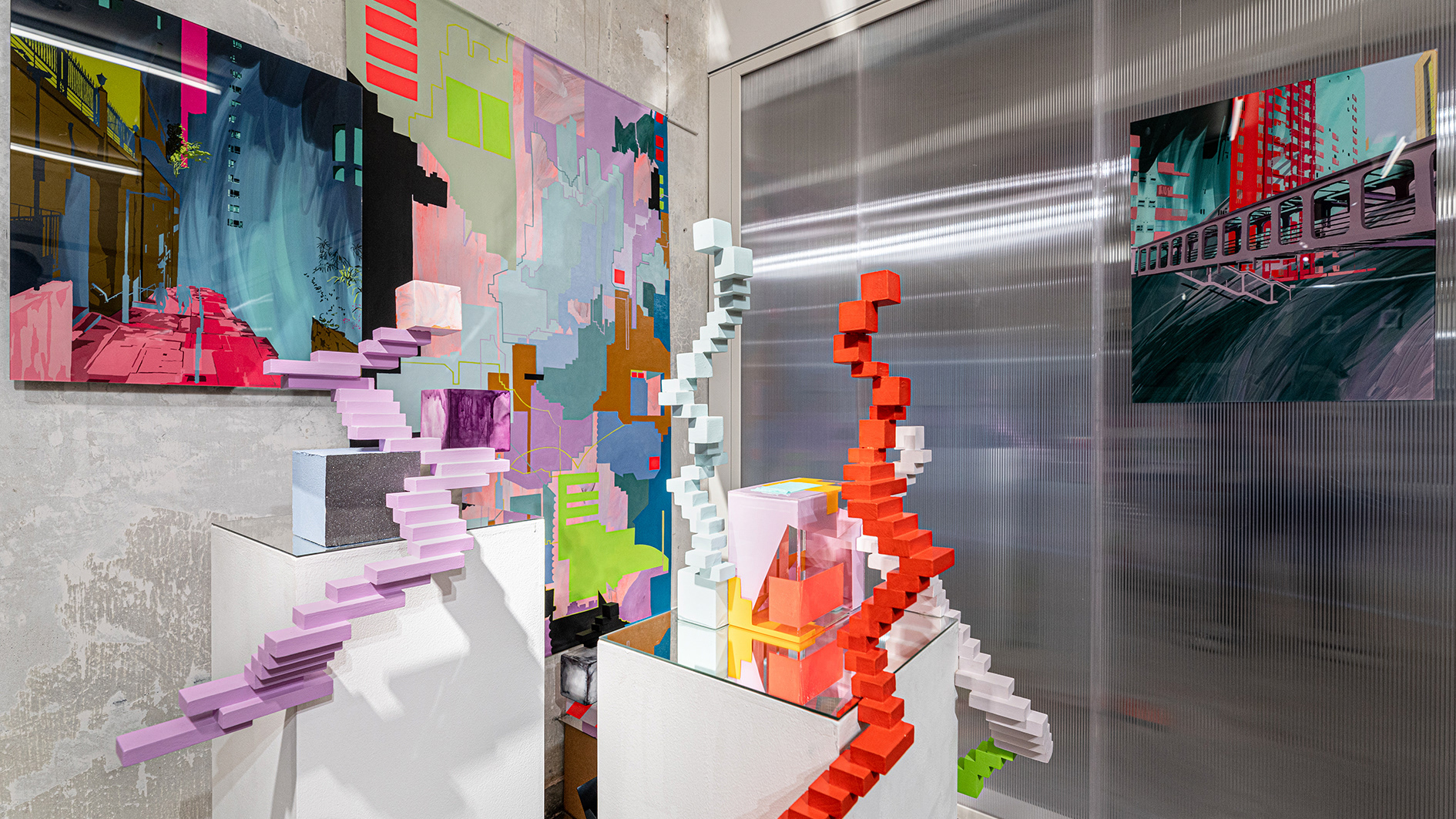As in many countries, during Singapore’s Circuit Breaker (AKA lockdown), we found ourselves in a situation in which an entire country’s movements were restricted to daily exercise and shopping for essentials with everyone but essential workers working from home. Safe Entry (Check in… Check out…) encapsulates aspects of my thinking during lockdown, anxious jumbled fragments floating together trapped inside a small box. Fragments of the Safe Entry QR codes that popped up overnight for contact tracing purposes; clouds viewed through apartment windows; half-remembered skylines of distant cities we were once allowed to travel to; the strangely intense dreams. It all started to seep in, coming together in a work that draws on the language of the new normal, in unprecedented times reflecting an unstable state of mind many of us experienced during lockdown.